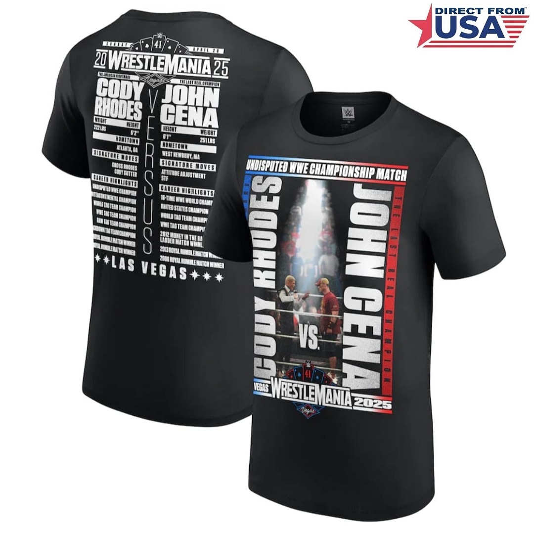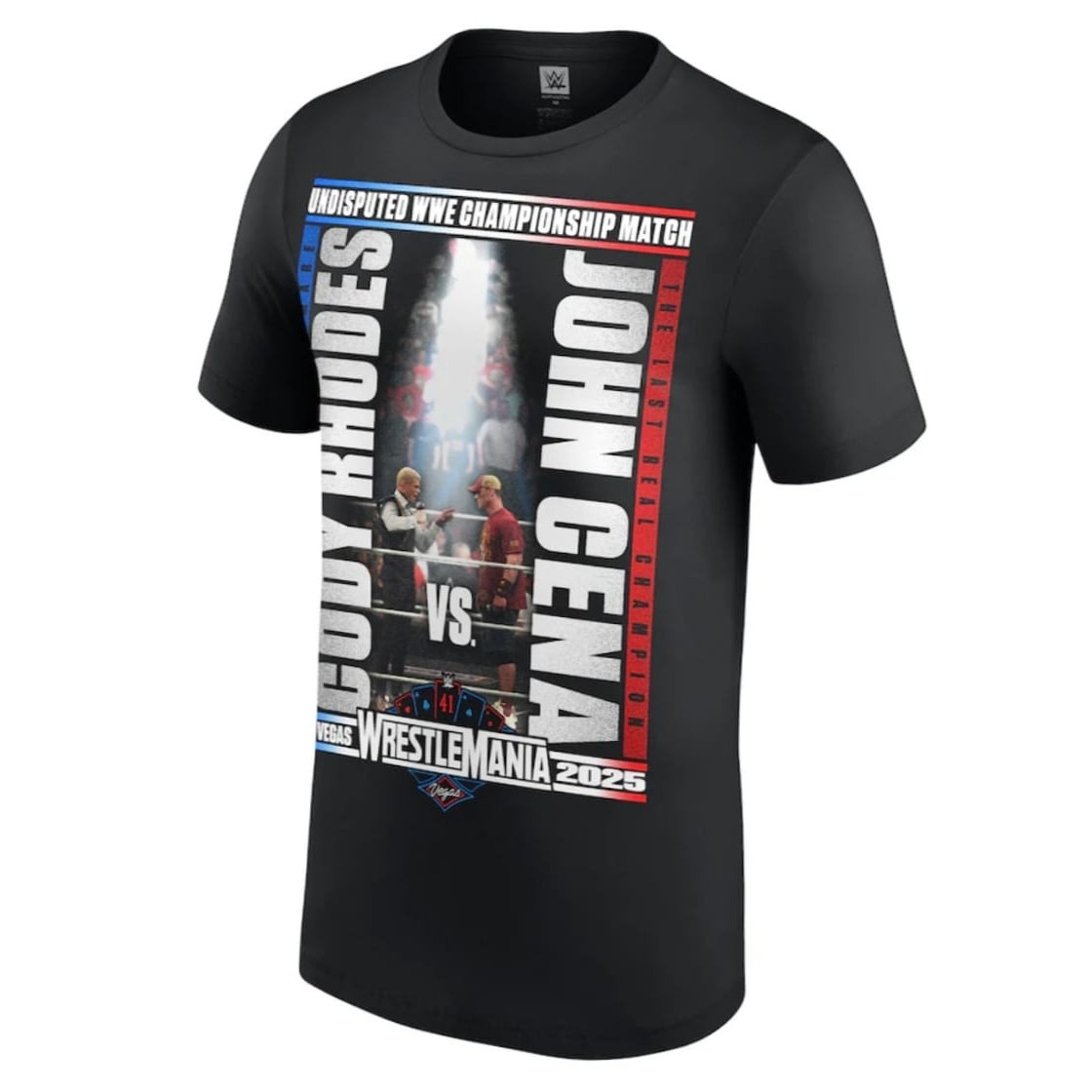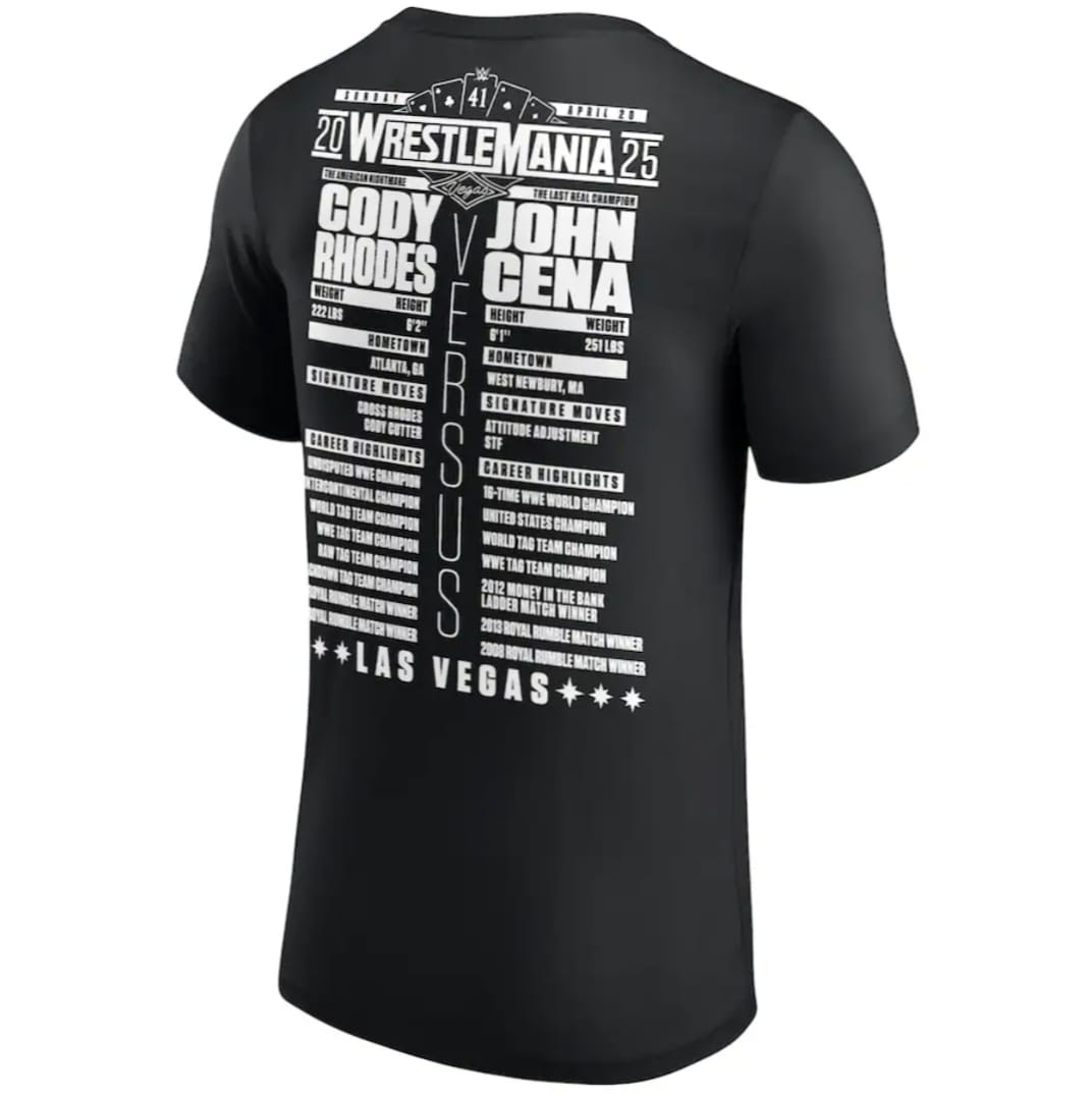 1 x WWE Authentic Men’s Black WrestleMania 41 John Cena vs. Cody Rhodes Match T-Shirt (Officially Licensed)