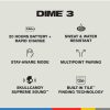 - Hours of Power – We built Dime 3 with a small, efficient battery that cuts its carbon footprint to less than half that of other earbuds. It delivers 8 hours of listening time in the bud and 2 full charges in the case for a full 20 hours of battery life