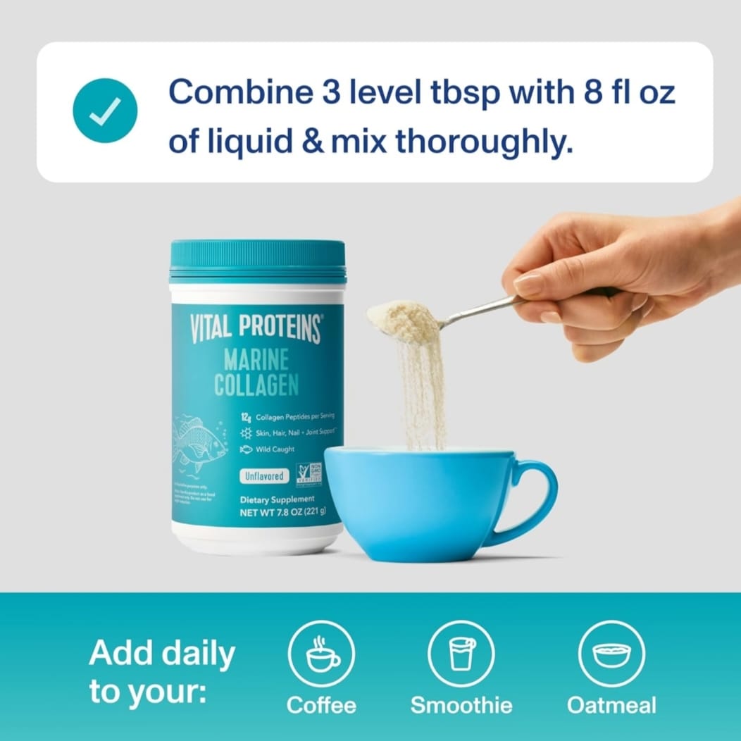 1 x Vital Proteins Marine Collagen Peptides Powder Supplement for Skin Hair Nail Joint – Hydrolyzed Collagen – 12g per Serving – 221 grams Canister