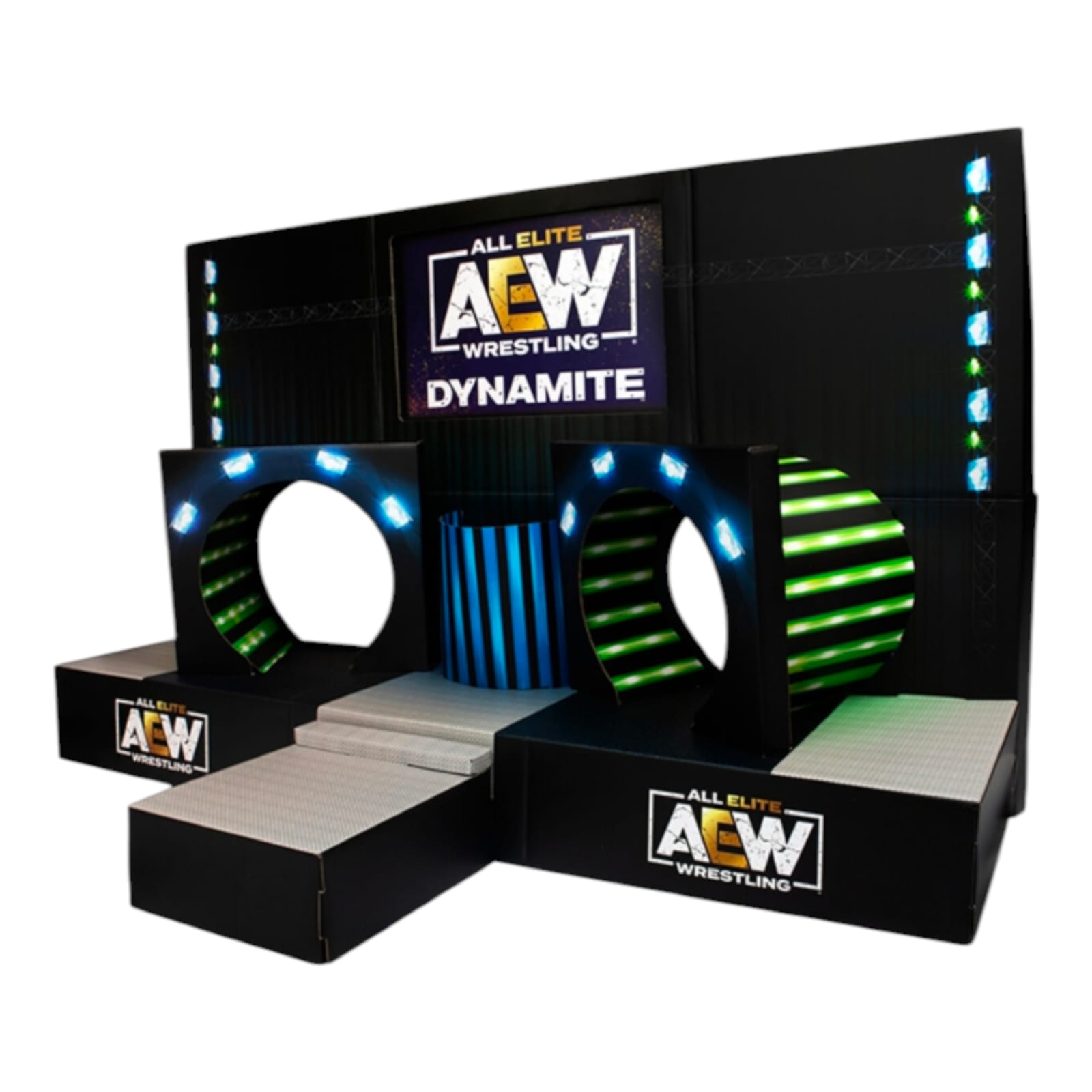 Make a grand entrance with the AEW Pop Up Entrance Stage for all your Jazwares AEW wrestling action figures! This massive pop-up stage is 22″ tall by 36″ wide and features incredible detail like painted lights, stage scaffolding and logos. This set also includes 6 interchangeable AEW event screens so you can change up based on which event you are planning for your figures. Add the also available separately Medium AEW Ring for a full setup!