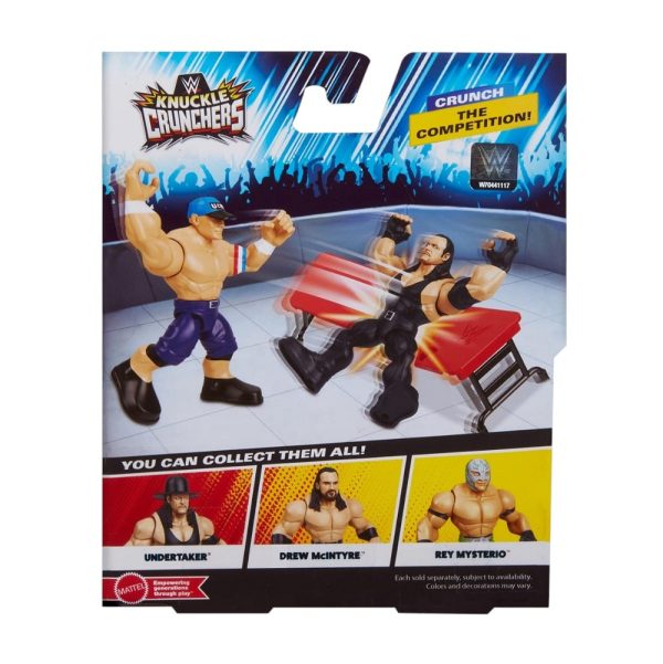 Crunch the Competition. Featuring knuckle-size bone-crunching action and breakaway accessories, each WWE Knuckle Cruncher figure is ready to rock the WWE Universe. These 3.5-inch scale figures are ready for kids and collectors to play out matches seen in WWE.