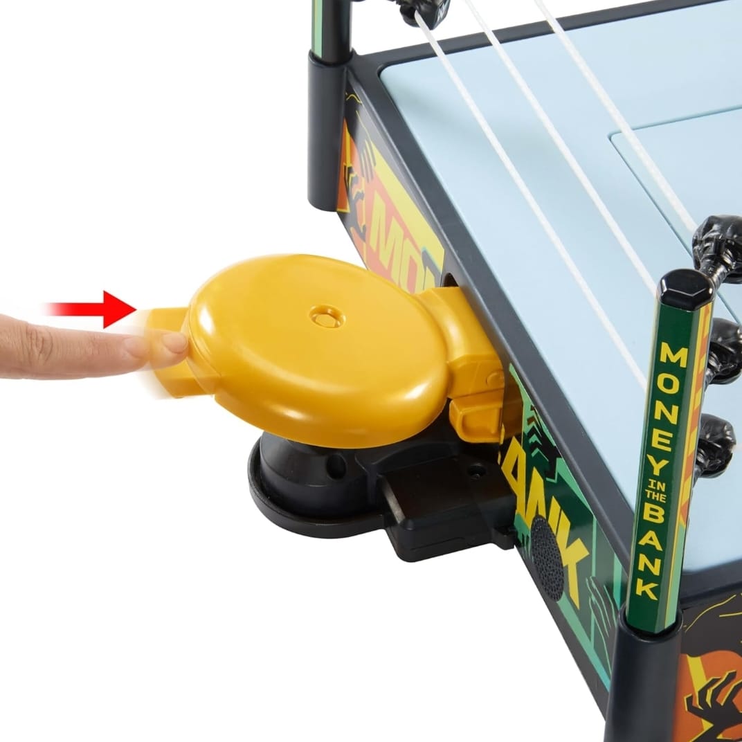 • Choose Kick-Out Mode when it’s time to go for the pin or set to Money In The Bank Mode to send Superstar figures (sold separately) flying toward the suspended briefcase or out of the ring.