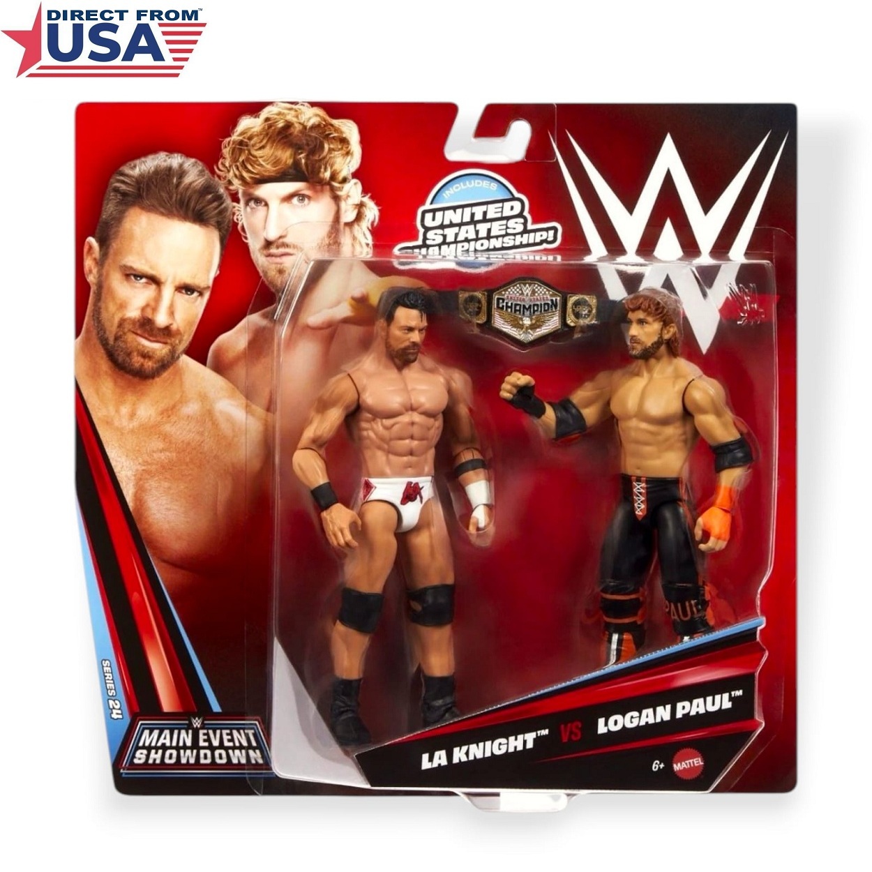 All Kids Item, Direct from USA, Hot Arrivals, Toy Zone, ToysWWE LA Knight VS Logan Paul Basic Series 24 Action Figures Battle Pack Showdown with US Championship Belt – 6 inch (Mattel Brand)